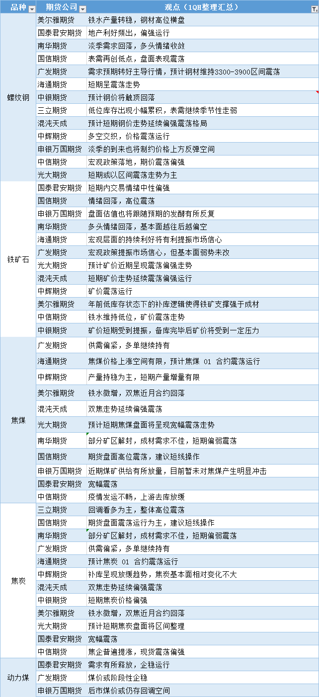 期货公司观点汇总一张图:12月2日黑色系(螺纹钢、焦煤、焦炭、铁矿石、动力煤等)
