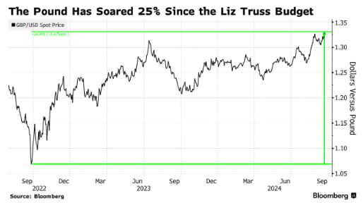 尽管其他央行都在加快宽松步伐,但英国央行采取渐进式降息策略,这意味着英镑已成为寻求更高相对回报的投资者的热门投资对象。市场定价显示,市场押注英国央行 11 月下次会议上的降息幅度将低于 25 个基点。