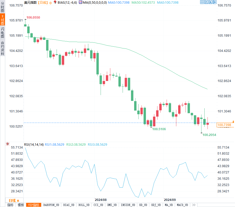 美元指数略有上涨,收于100.75点,接近一年低点。美联储在周三宣布降息50个基点,开启了新一轮的货币政策宽松周期。尽管降息通常会削弱美元,但市场对美联储进一步降息的预期反而提振了美元走势。