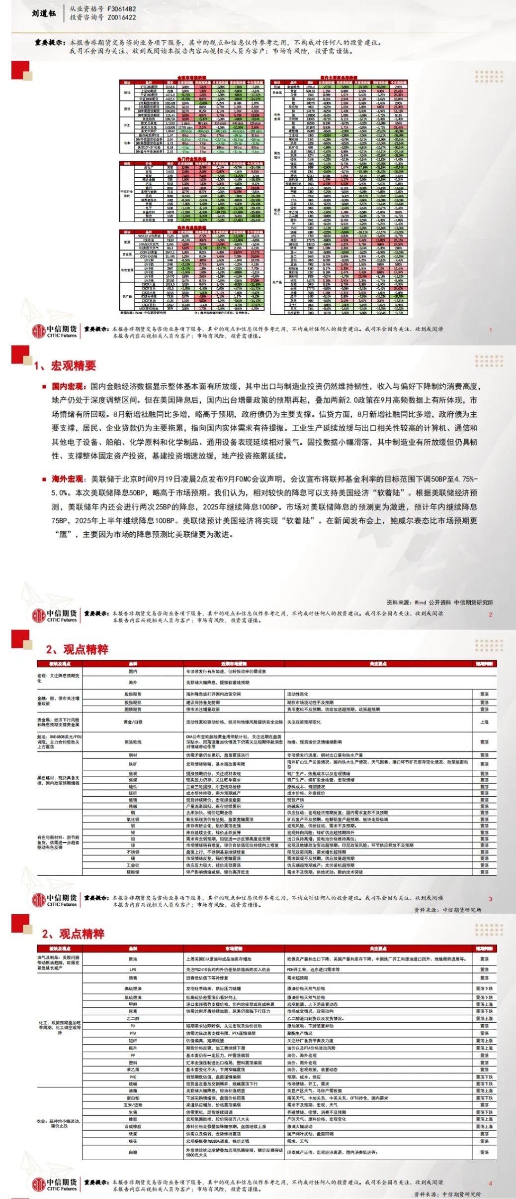 标题:中信期货9月23日晨报:美联储降息提振“软着陆” 预期,有色贵金属多头建议继续持有