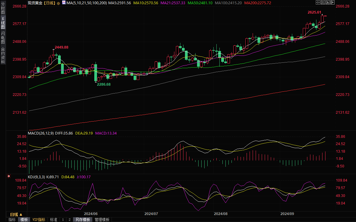 现货黄金在历史高位附近窄幅震荡,目前交投于2620.81美元/盎司附近。金价上周五首次突破2600美元大关,并一度刷新历史高点至2625.61美元/盎司,收报2621.99美元/盎司,延续了受美国进一步降息押注和中东紧张局势加剧提振的涨势。