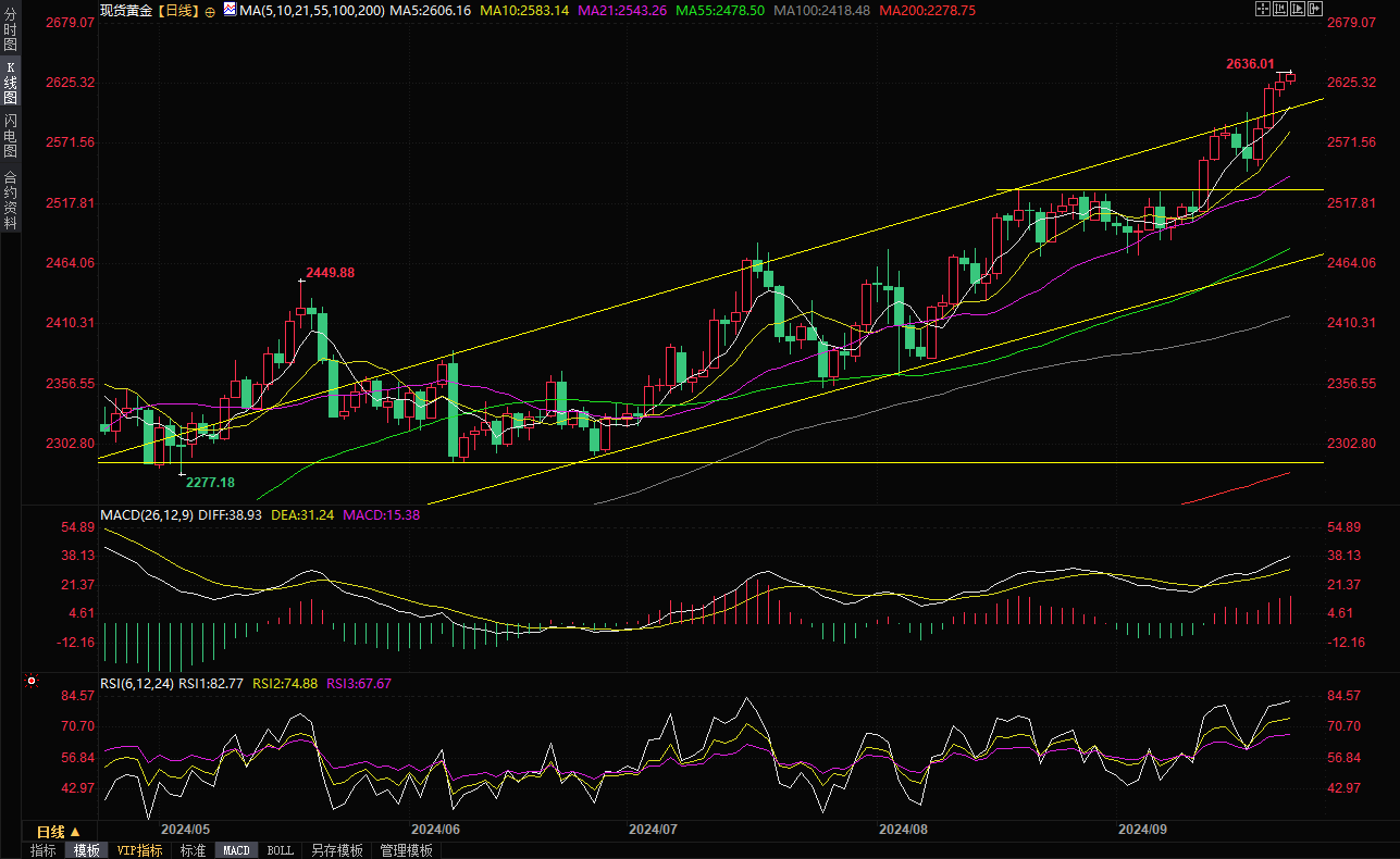 现货黄金周一收盘上涨近0.3%,报2628.38美元/盎司。金价盘中最高触及2634.88美元/盎司,刷新历史新高。