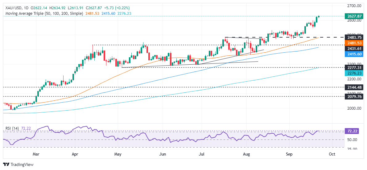 Valencia指出,如果金价破9月18日高位2600美元/盎司,预计将出现下跌。接下来要测试的关键支撑位将是9月18日低点2546美元/盎司,然后是50日简单移动平均线(SMA)2481美元/盎司。
