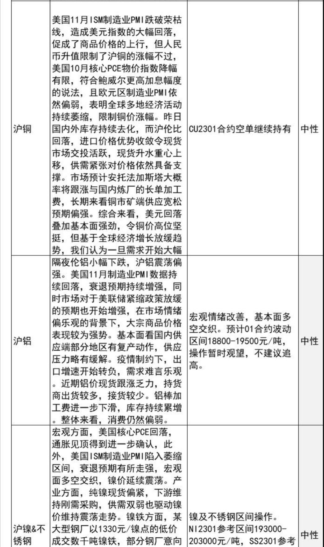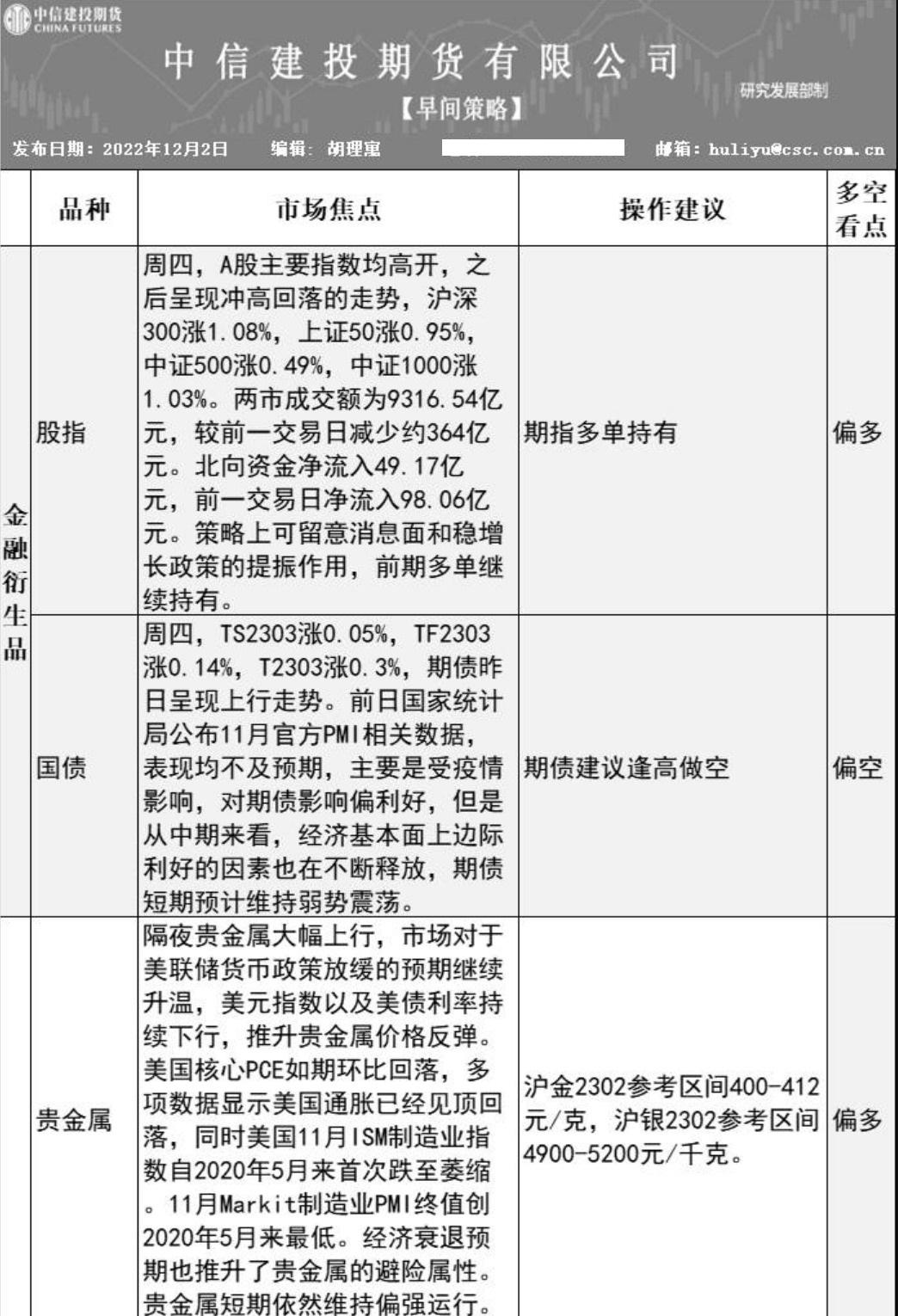 标题:中信建投期货12月2日早间交易策略