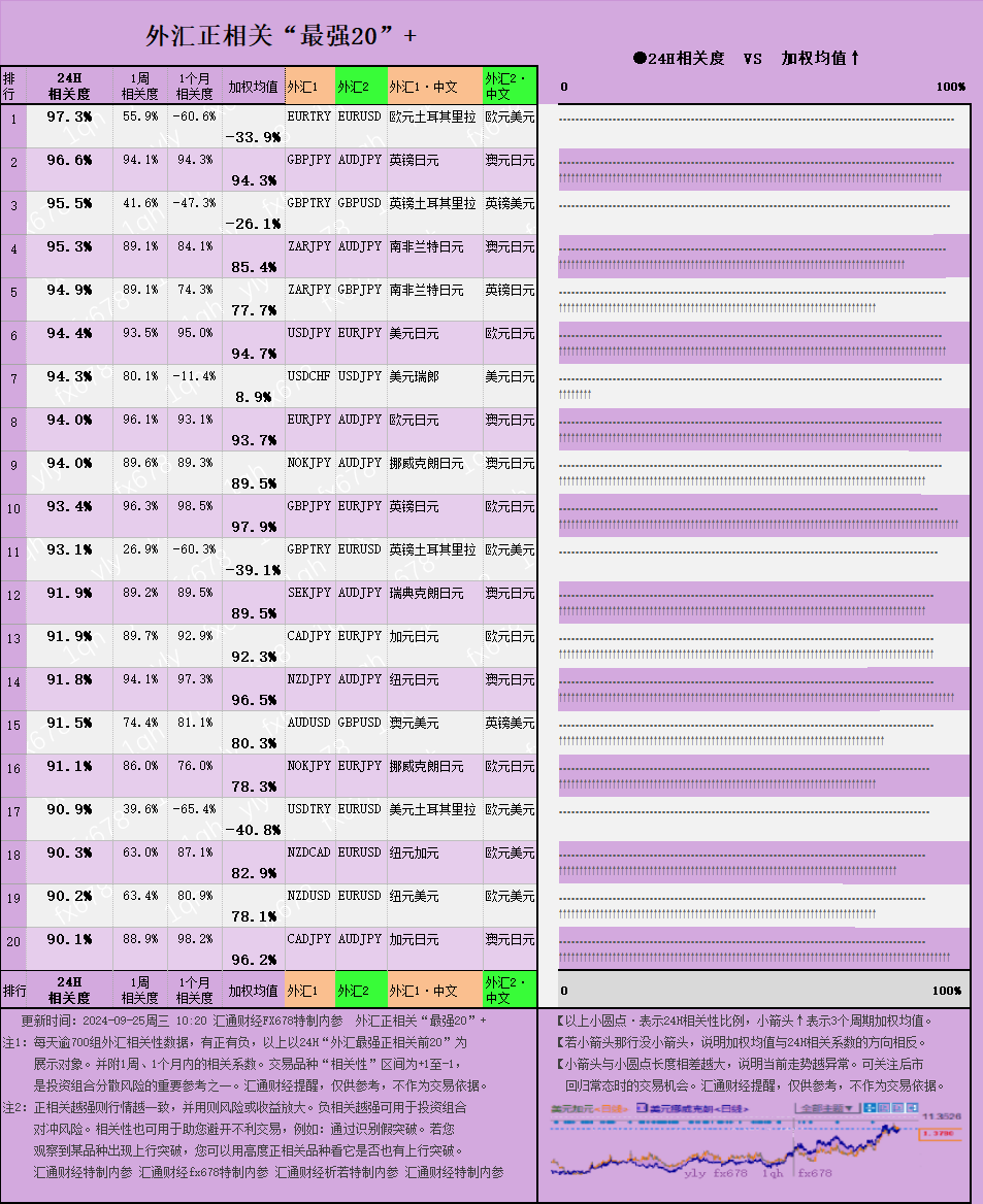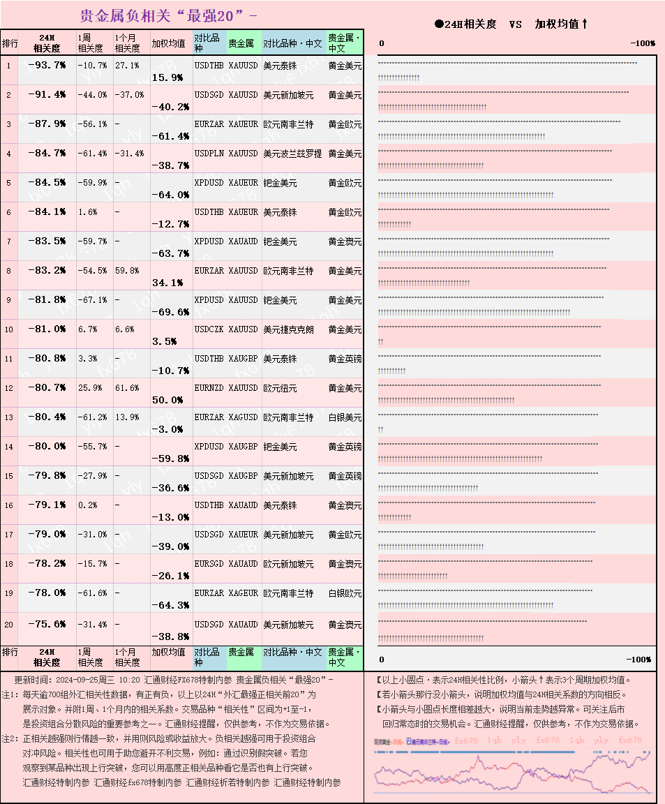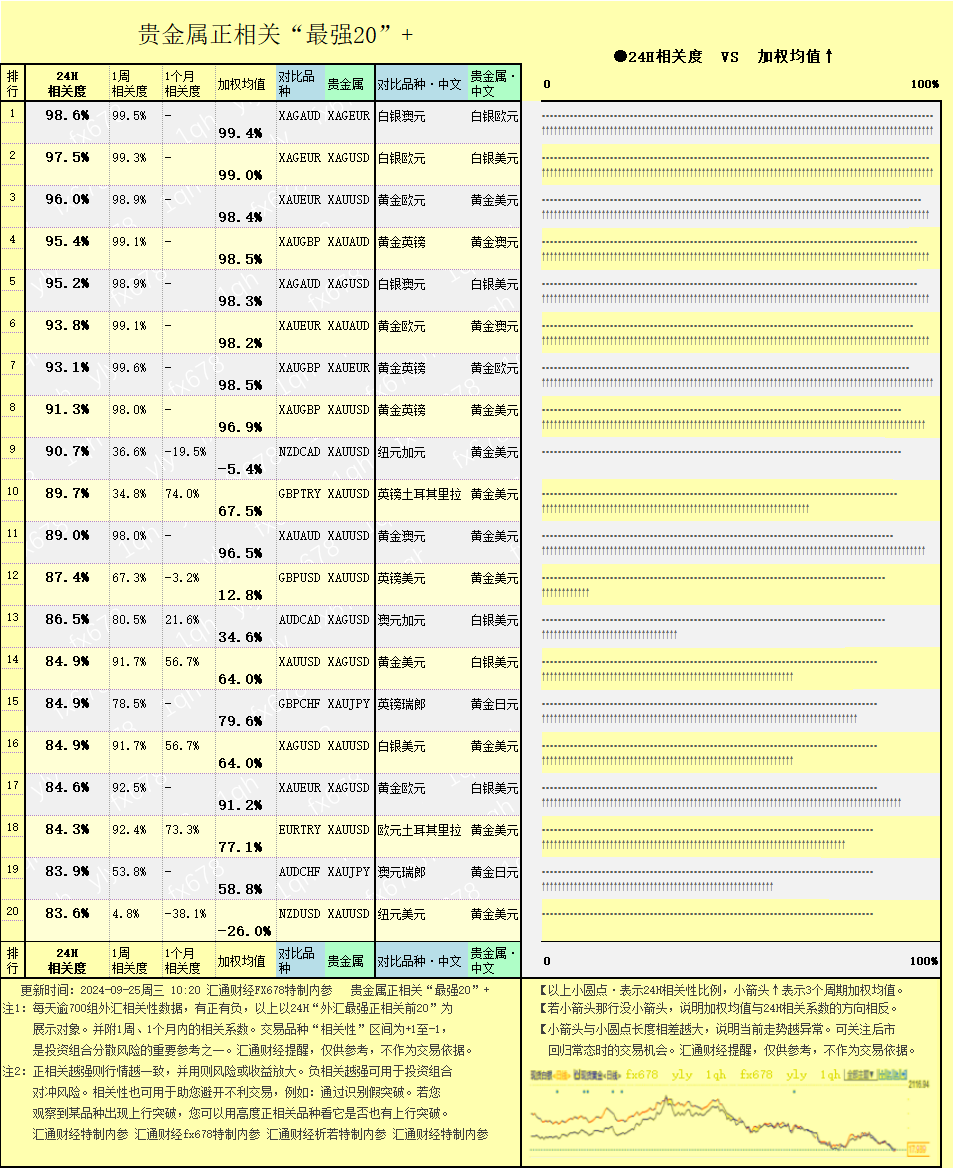 标题:图解:外汇相关性+贵金属相关性一览(2024/09/25)