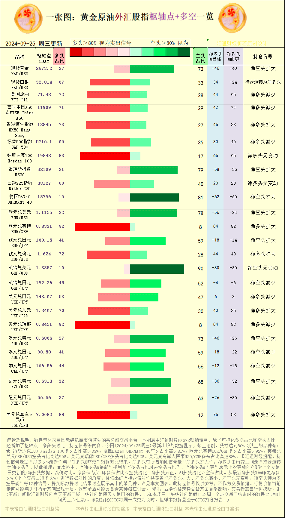 标题:一张图:2024/9/25黄金原油外汇股指“枢纽点+多空持仓信号”一览