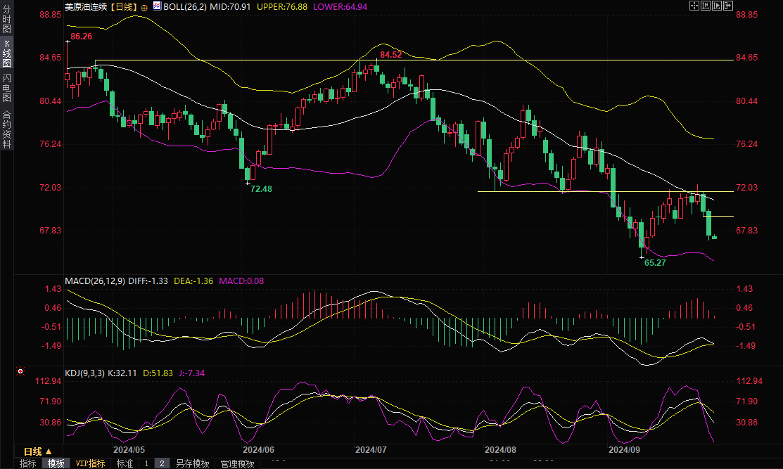值得一提的是,周四美国初请失业金表现比较靓丽,以色列周四拒绝国际要求与真主党停火的呼吁,无视其在华盛顿的最大盟友,并继续发动空袭;亚洲大国政府承诺推出更多刺激政策;这一系列利多消息均未能帮助油价扭转跌势,暗示油价短线下跌压力极大。从技术面来看,美原油在8月21日低点71.46和布林线中轨阻力等关键位置附近受阻后持续回落,KDJ死叉良好运行,MACD红色柱萎缩,短线油价偏向空头,后市可能会试探9月10日低点65.27附近支撑,能否进一步下破还有待观察。上方留意5日均线69.34附近阻力,若能回升至该位置上方,则削弱短线看空信号。