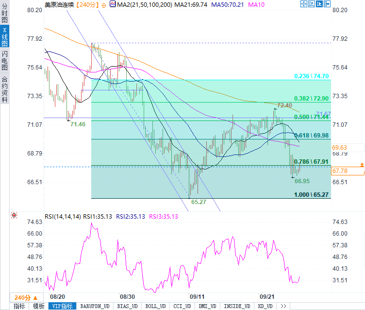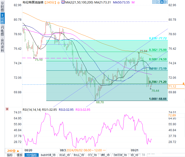 布伦特原油连续合约小幅上涨0.32美元,涨幅0.23%,报每桶71.49美元;而美国西德克萨斯中质油(WTI)连续合约上涨0.65美元,涨幅0.45%,报68.11美元。然而,周线来看,布伦特和WTI的跌幅分别接近3.7%和5.7%。