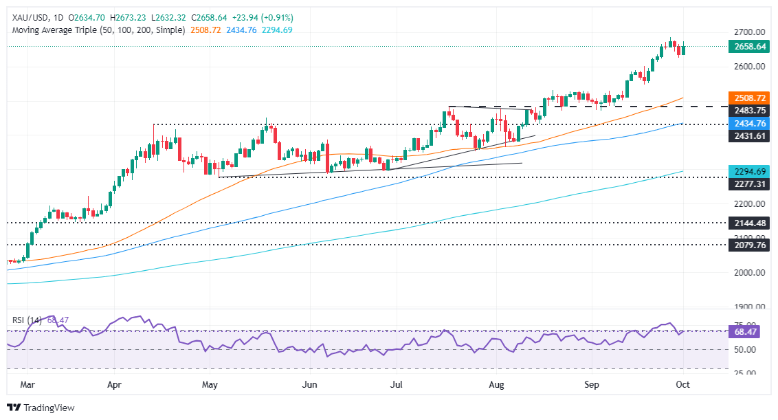一旦跌破,下一个支撑位将是9月18日低点2546美元,然后是50日简单移动平均线(SMA)的2503美元。
