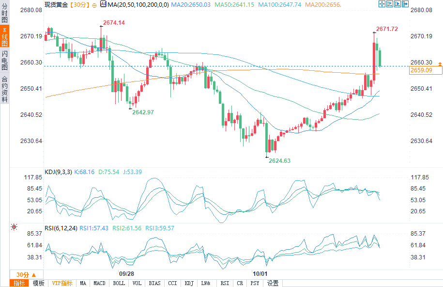 汇通财经APP讯——周二(10月1日),受中东紧张局势和美国债券收益率下降影响,避险需求增加,金价上破 2,670 美元关口。在美联储主席暗示未来降息幅度较小后,金价仍徘徊在近期历史高位以下。