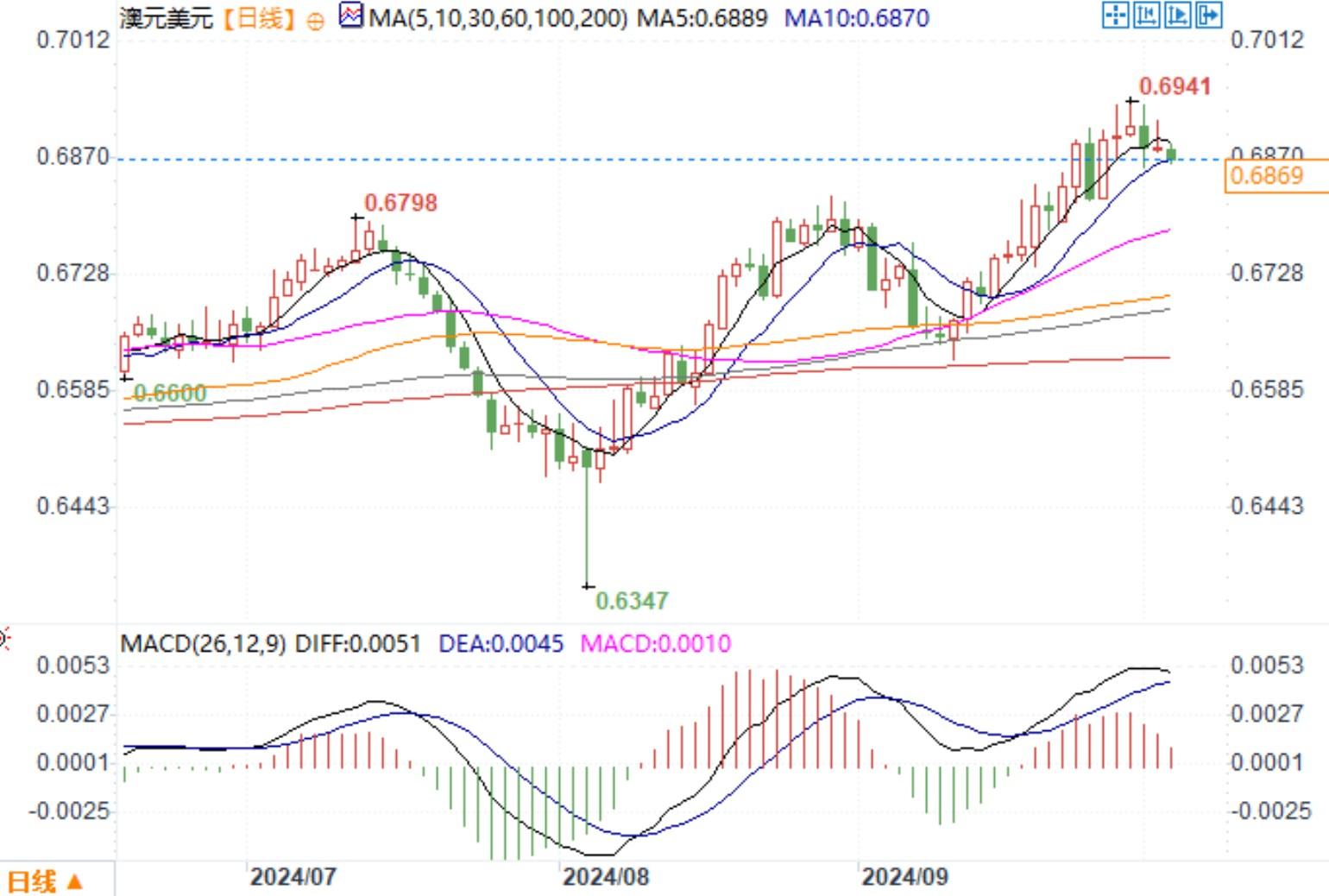 澳元兑美元日线图 来源:易汇通