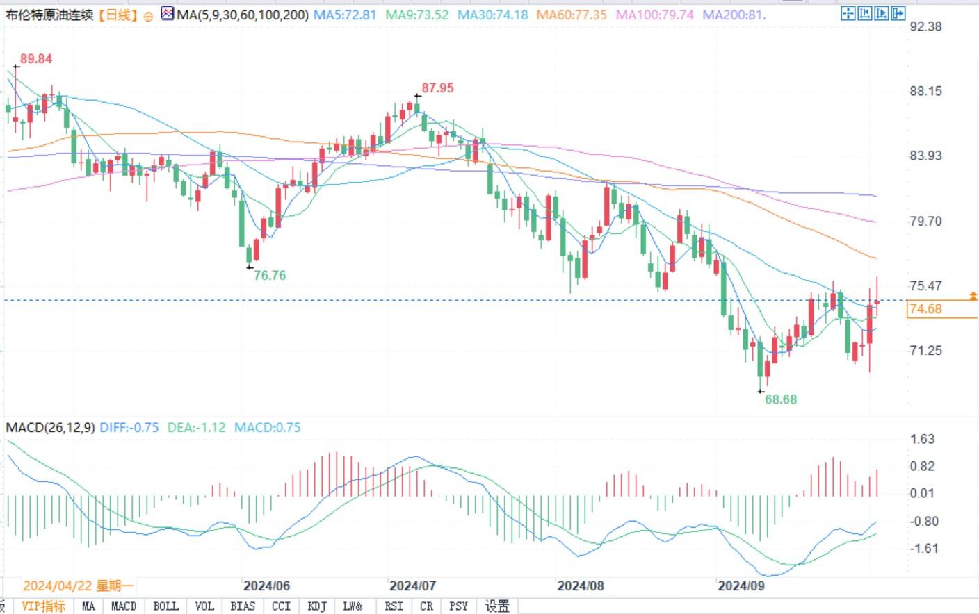 布伦特原油日线图