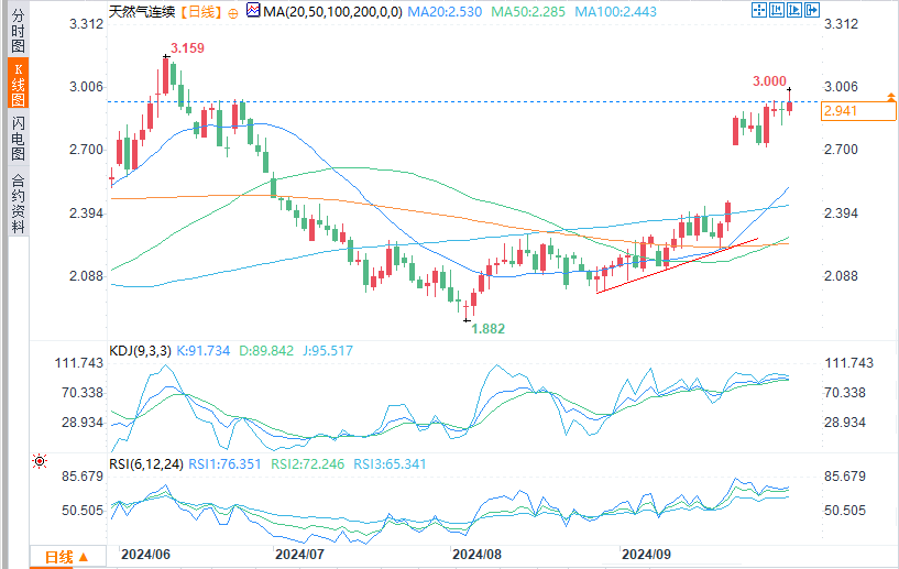 天然气价格保持在高位附近