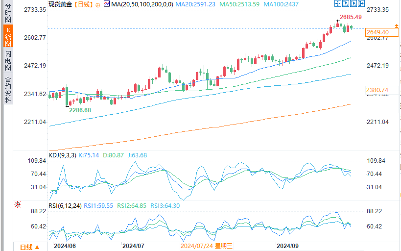 现货黄金报2648.41美元/盎司,跌幅0.56%。WTI原油报70.16美元/桶。美国天然气报2.944美元/百万英热,涨幅1.66%。