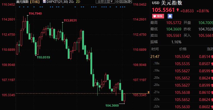 美元指数下跌0.56%至105.519。