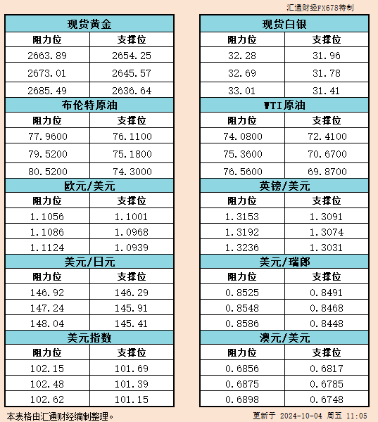 标题:10月4日亚市支撑阻力:金银原油+美元指数等六大货币对