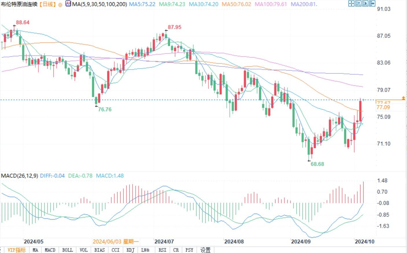 布伦特原油日线图