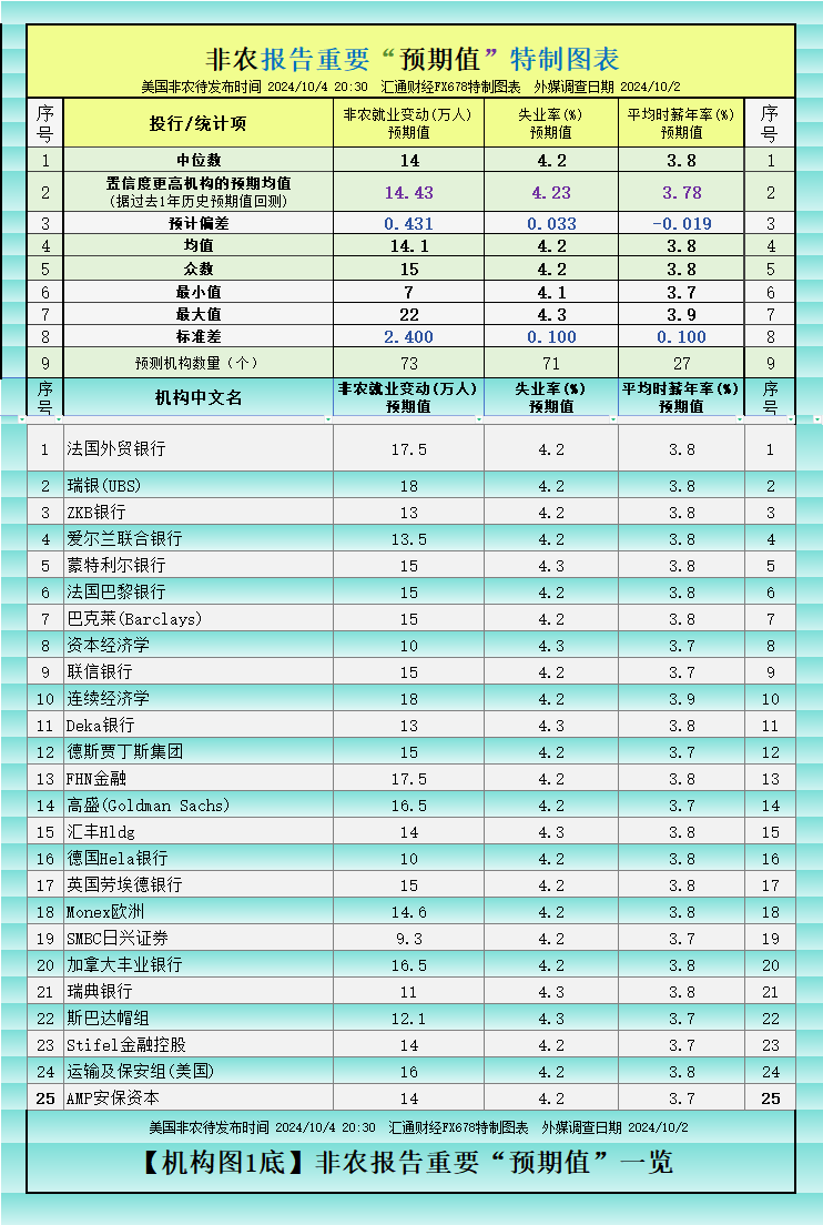 标题:图解非农:预期仅增14万?看全球逾70个投行大咖最全预测