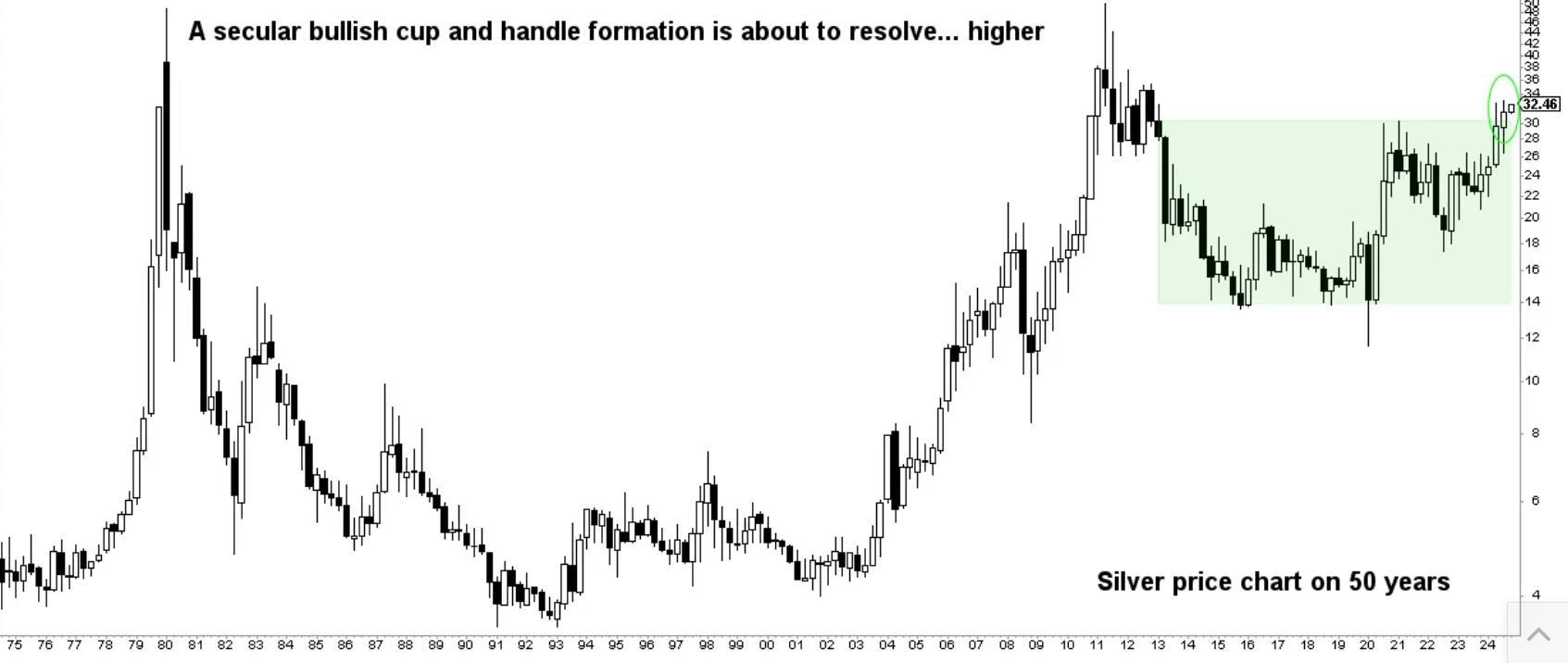 一旦该模式完成,这些形态就预示着价格将出现强劲走势,从而放大白银在2025年的看涨前景。