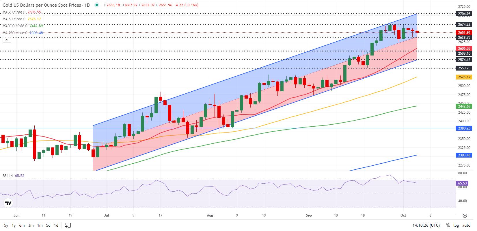 汇通财经APP讯——周一(10月7日)亚市早盘,现货黄金震荡微跌,目前金价位于2649美元/盎司附近。FXStreet分析师Eren Sengezer撰文,对金价本周走势进行预测和分析。