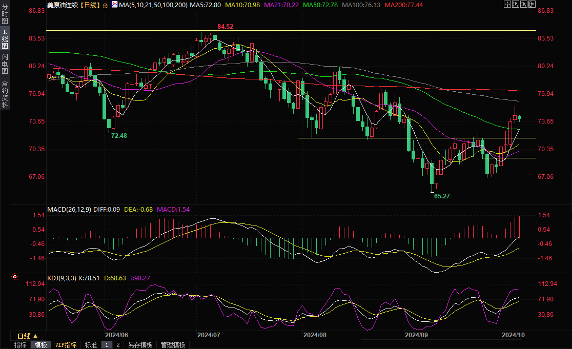 美原油连续日线图,来源:易汇通)