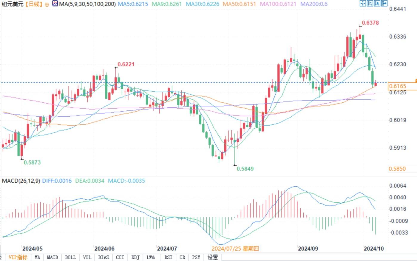 纽元兑美元日线图