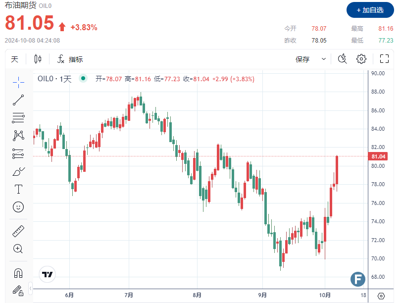 汇通财经APP讯——周一(10月7日),中东紧张局势加剧引发了以色列可能袭击伊朗石油基础设施的可能,油价大幅上涨。