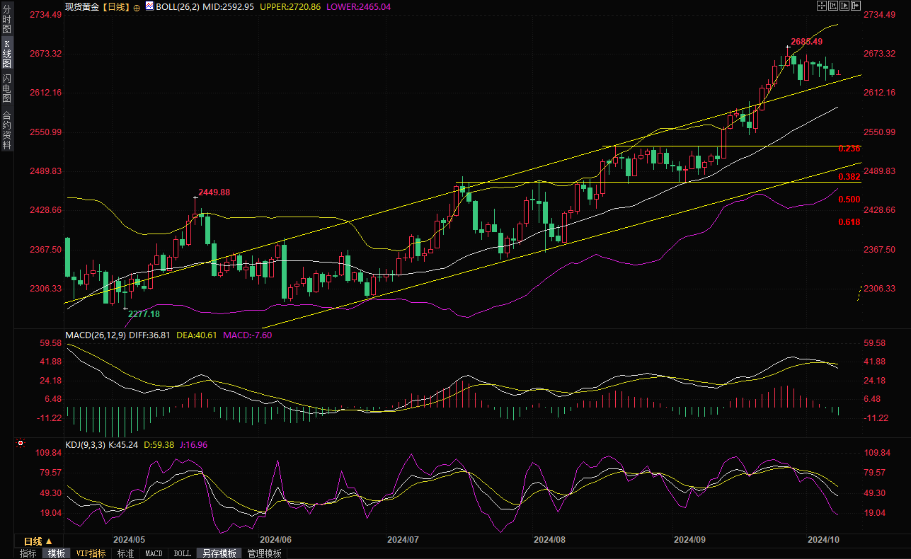 现货黄金现报2643.18美元/盎司。