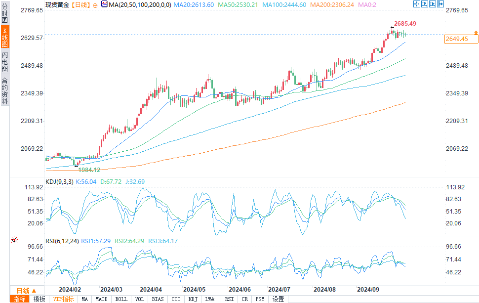 现货黄金报2649.28美元/盎司,跌幅0.13%。