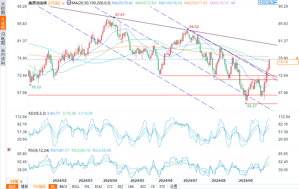 标题:原油技术分析:油价升至76美元上方,向200均线看齐