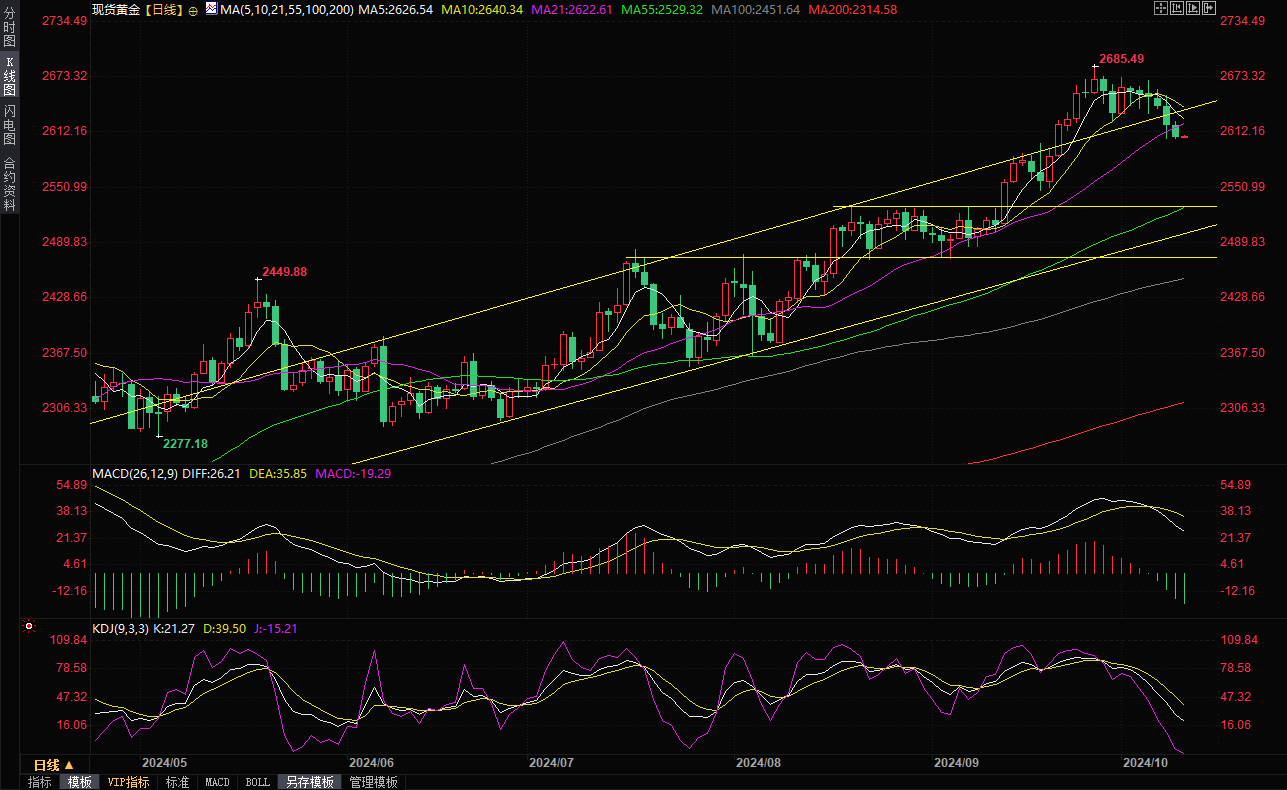 现货黄金窄幅震荡,目前交投于2608.99美元/盎司附近。金价周三继续走弱,为连续第六日下跌,盘中最低触及2605.10美元/盎司,收报2607.66美元/盎司,受累于美元上涨刷新逾一个半月高位,以及对美联储11月大幅降息的预期减弱,美债收益率刷新逾两个月高位。