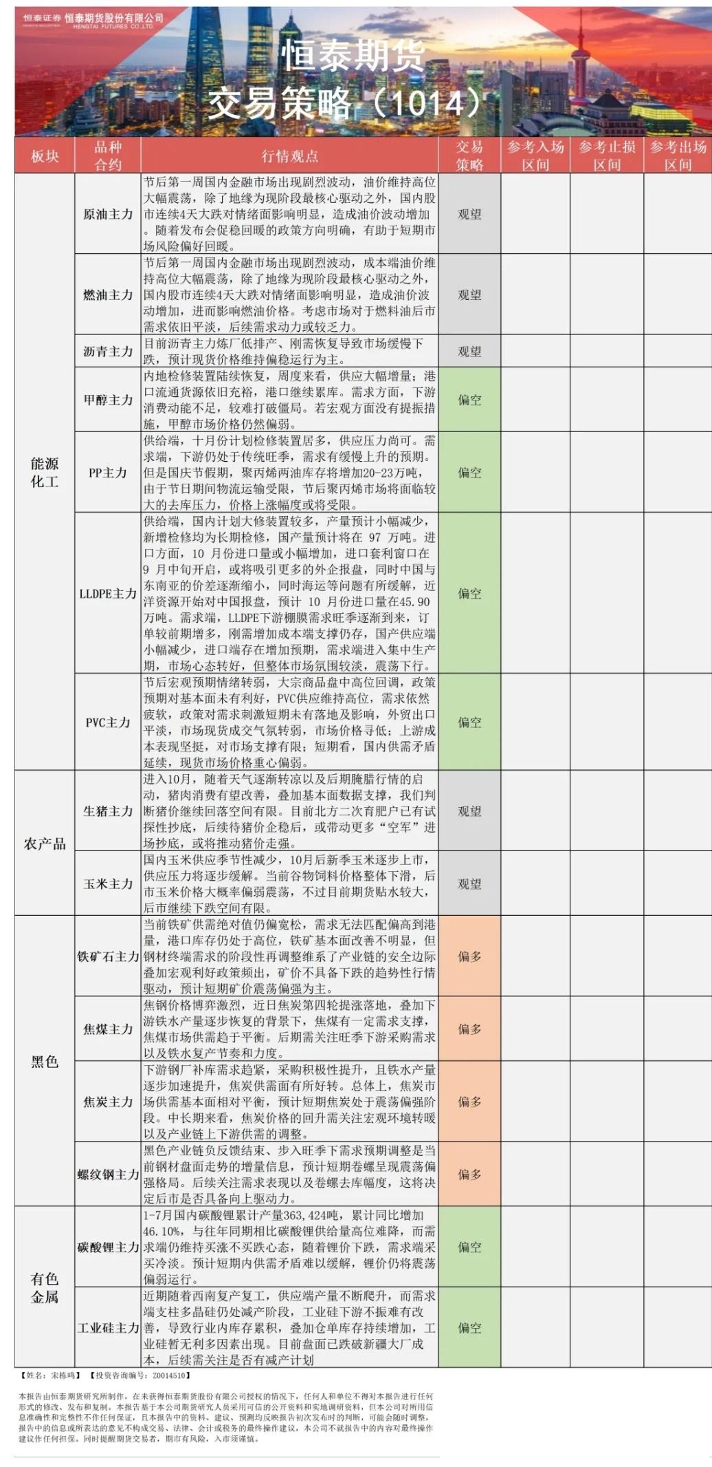 标题:【恒泰早报】10月14日恒泰期货交易策略