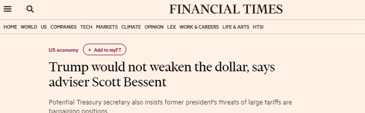《金融时报》认为,贝森特的言论很有意义,因为他近年来已成为特朗普在经济和金融方面的高级顾问。