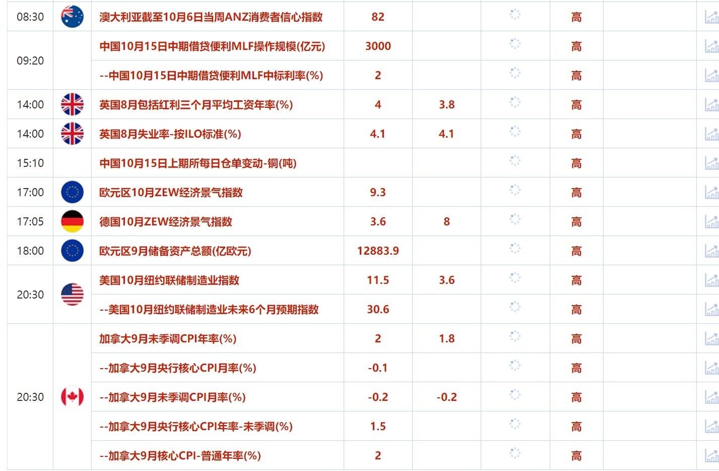汇通财经APP讯——以下是周二 ( 10月15日)财经早餐,包括基本面重要消息、贵金属/原油/外汇/商品/股市/债市等行情、国际要闻、国内要闻、机构观点、今日财经重要数据及财经大事。以色列称计划打击伊朗的军事设施,而不是石油或核设施,国际油价大跌。明尼阿波利斯联储主席卡什卡里在一次演讲中表示,鉴于2%的通胀目标即将实现,美联储可能在接下来的几个季度内进一步适度降息。Phillip Nova高级市场分析师预测,美国大选和美联储11月决议前,金价将进一步盘整。