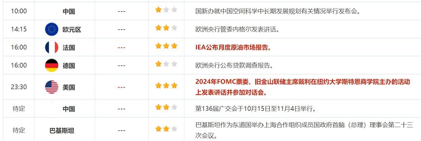 标题:10月15日财经早餐:以色列将避免打击伊朗能源设施,美国大选结果前金价或盘整