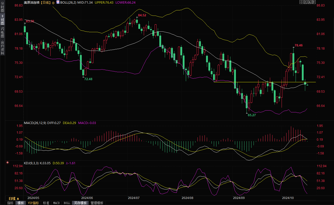 美原油目前交投于70.90美元/桶附近。油价周二下跌超过4%,触及近两周最低,因需求前景疲软,而且有媒体报导称以色列不会打击伊朗核和石油基地,缓解了市场对供应受扰的担忧。