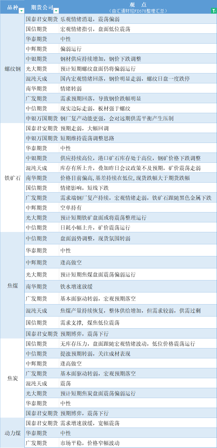 标题:期货公司观点汇总一张图:10月18日黑色系(螺纹钢、焦煤、焦炭、铁矿石、动力煤等)