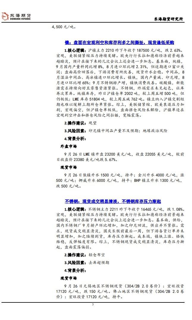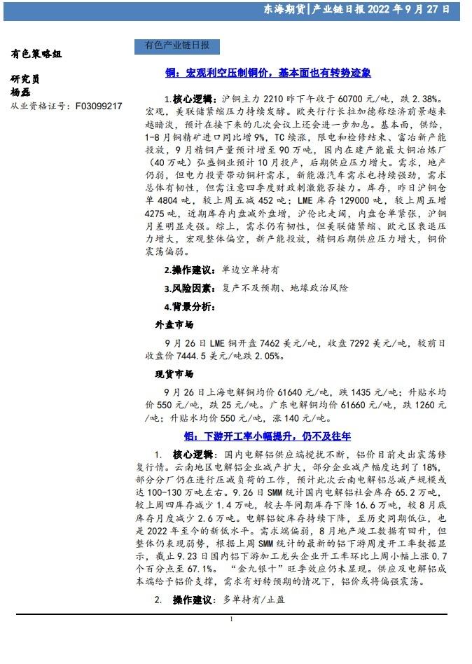 标题:【东海期货9月27日产业链日报】有色篇:宏观利空压制铜价,基本面也有转势迹象