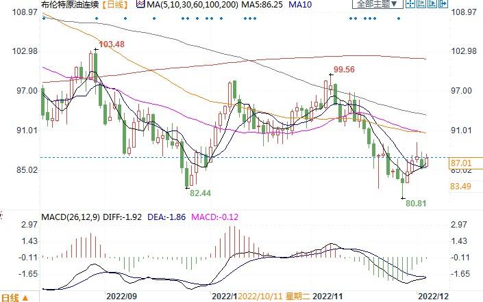布伦特原油连续报87.01美元/桶