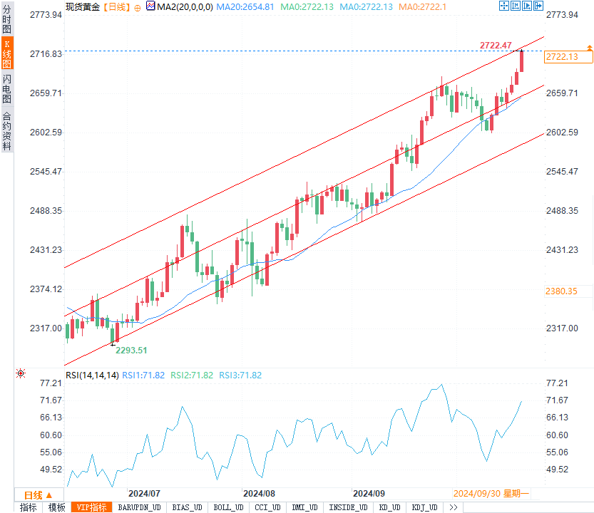 本周,金价的上涨主要受地缘政治紧张局势和宽松货币政策预期的推动。中东冲突升级、美国大选临近以及全球主要央行可能进一步降息,均成为推动金价上涨的主要因素。黄金作为传统的避险资产,其吸引力在当前全球不确定的背景下持续增强。随着未来几个月经济和政治风险的累积,市场预计黄金价格有望进一步攀升,甚至突破每盎司3,000美元。