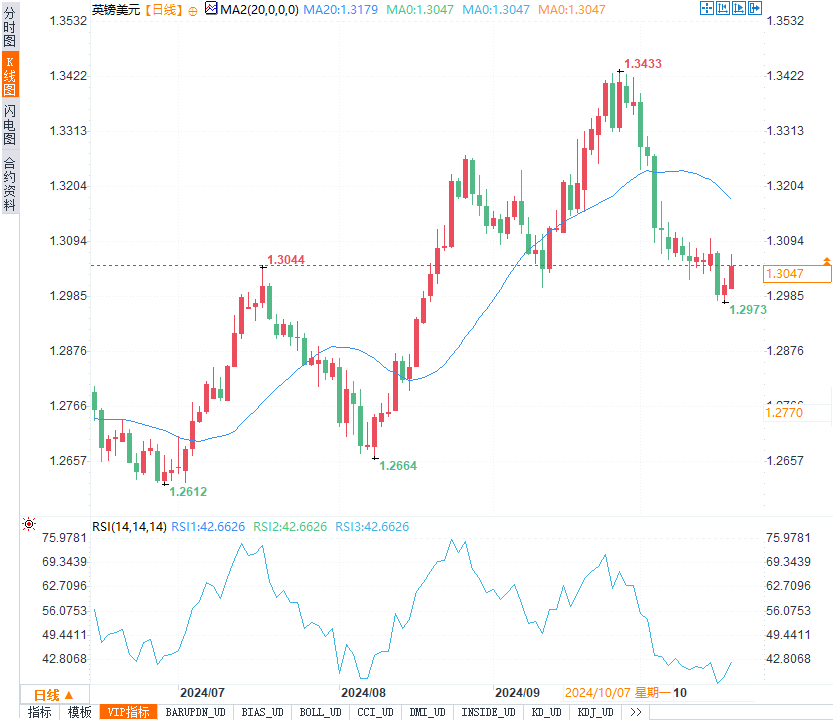 英镑兑美元上涨了0.2%,收于1.3042。主要受到英国9月零售销售数据好于预期的提振,该数据表明英国经济仍具有一定韧性。然而,英镑本周的涨幅有限,市场对英国央行加速降息的预期依然强烈。