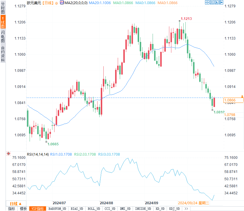 欧洲央行周四如期降息25个基点,反映出欧元区经济面临的压力不断增加。市场普遍预计,欧洲央行在12月可能会再次降息。欧元区的经济数据普遍不佳,拉加德在新闻发布会上强调,通胀正在受控,经济增长需要更多支持。分析师预计,欧元的弱势可能持续到今年年底。