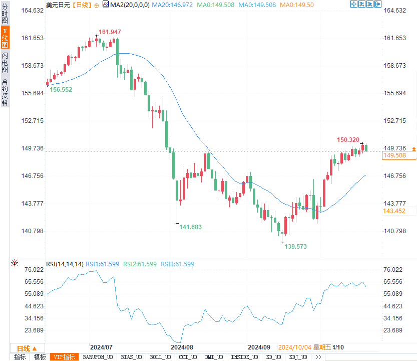 日元(JPY)波动及背景分析美元兑日元在本周一度突破150关口,创下8月以来的最高水平,随后回落0.5%,收于149.51。尽管周五回调,