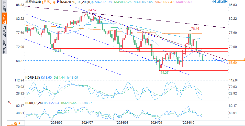 美国经济数据和中国经济刺激计划备受关注宏观经济方面,美国9月零售销售数据向好,缓解了对经济增长的一些担忧,不过交易商仍预期美联储将在11月降息。与此同时,美国能源情报署(EIA)报告称,原油、汽油和馏分油库存下降,为油价提供了一些支撑。