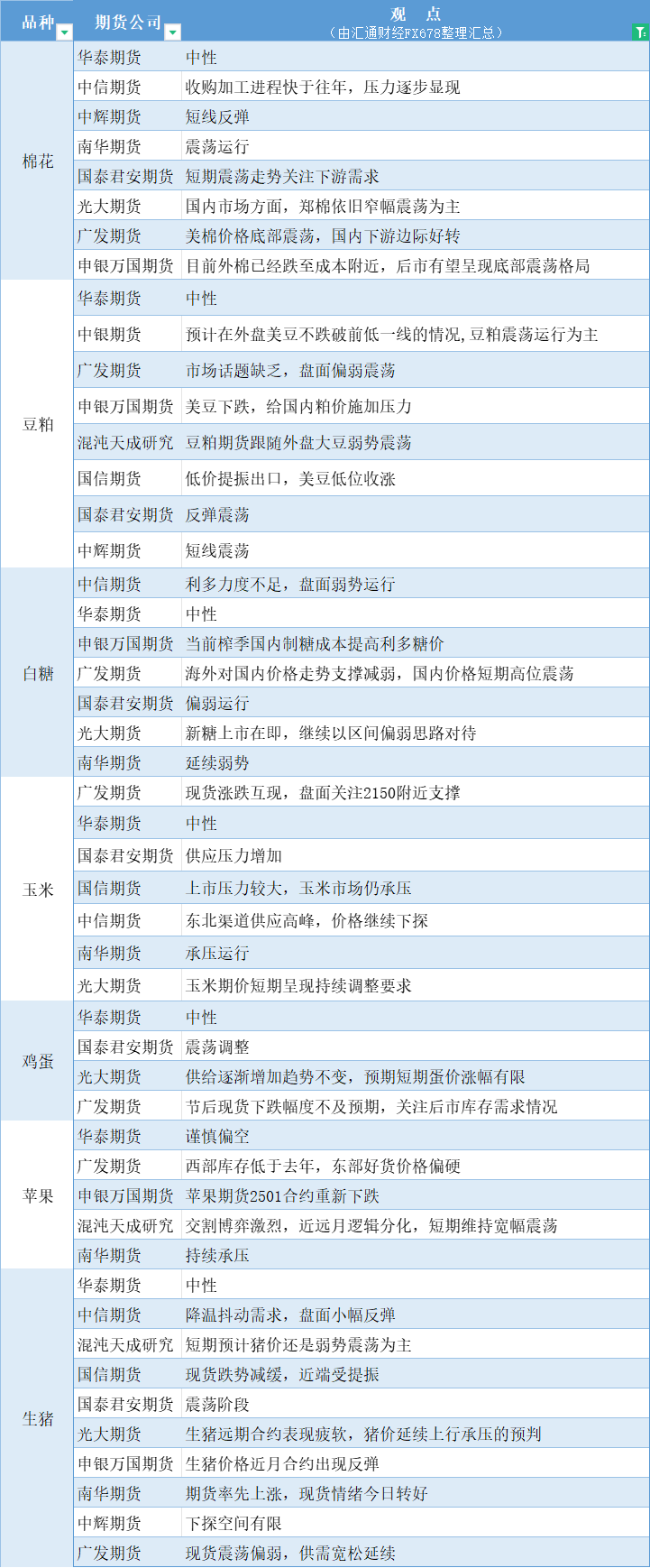 标题:期货公司观点汇总一张图:10月22日农产品(棉花、豆粕、白糖、玉米、鸡蛋、生猪等)