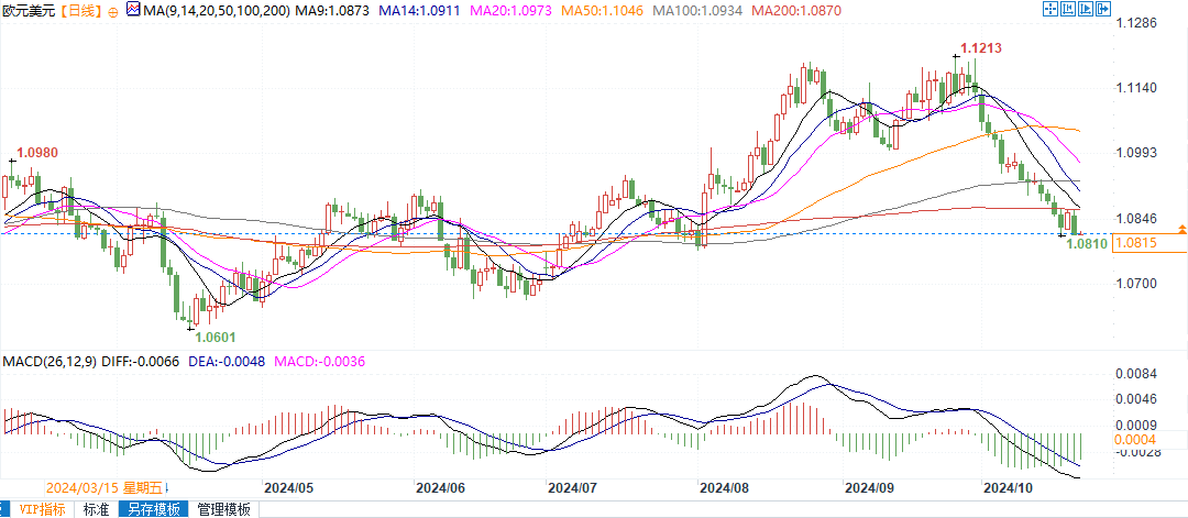 欧元兑美元的近期支撑位为1.0778,即8月初的低点。如果美国国债收益率在总统大选后获得上行动力,则不能排除汇价进一步下跌的可能性。”