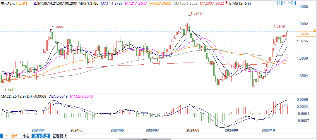 美元兑加元的阻力位仍为1.3850和1.3950,支撑位为1.3750和1.3650。”