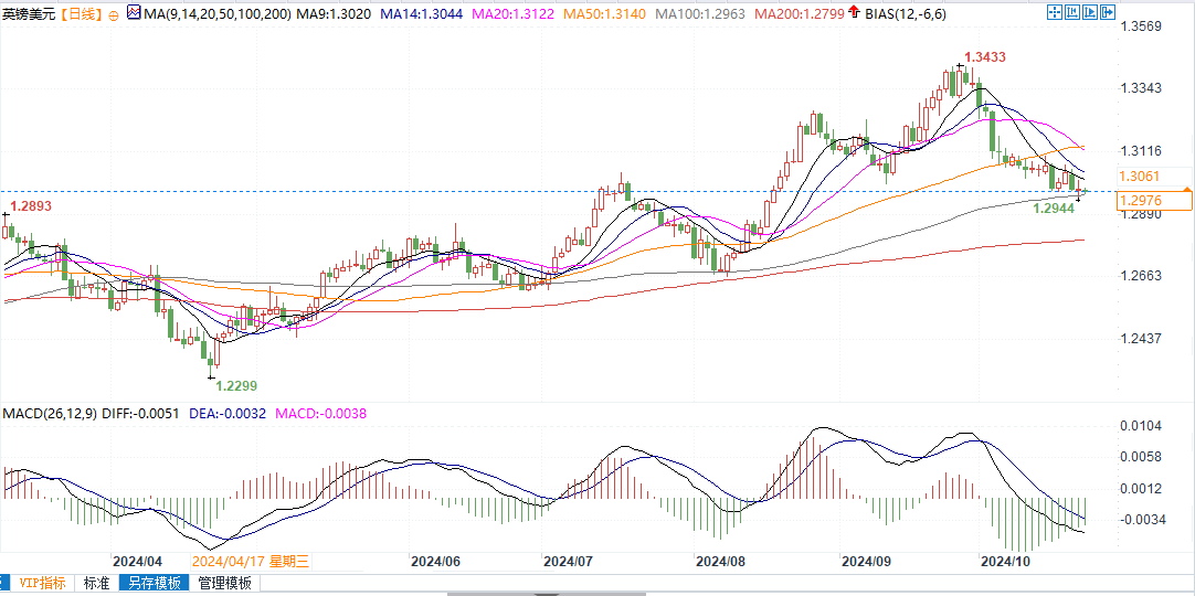 英镑兑美元再次跌破1.30,目前交投于1.2974。