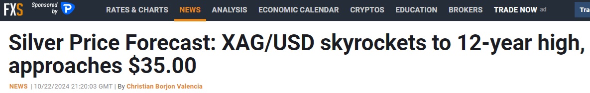 标题:银价暴涨至2012年以来高位,分析师:第一阻力位35美元关口,不排除涨向历史高点可能性