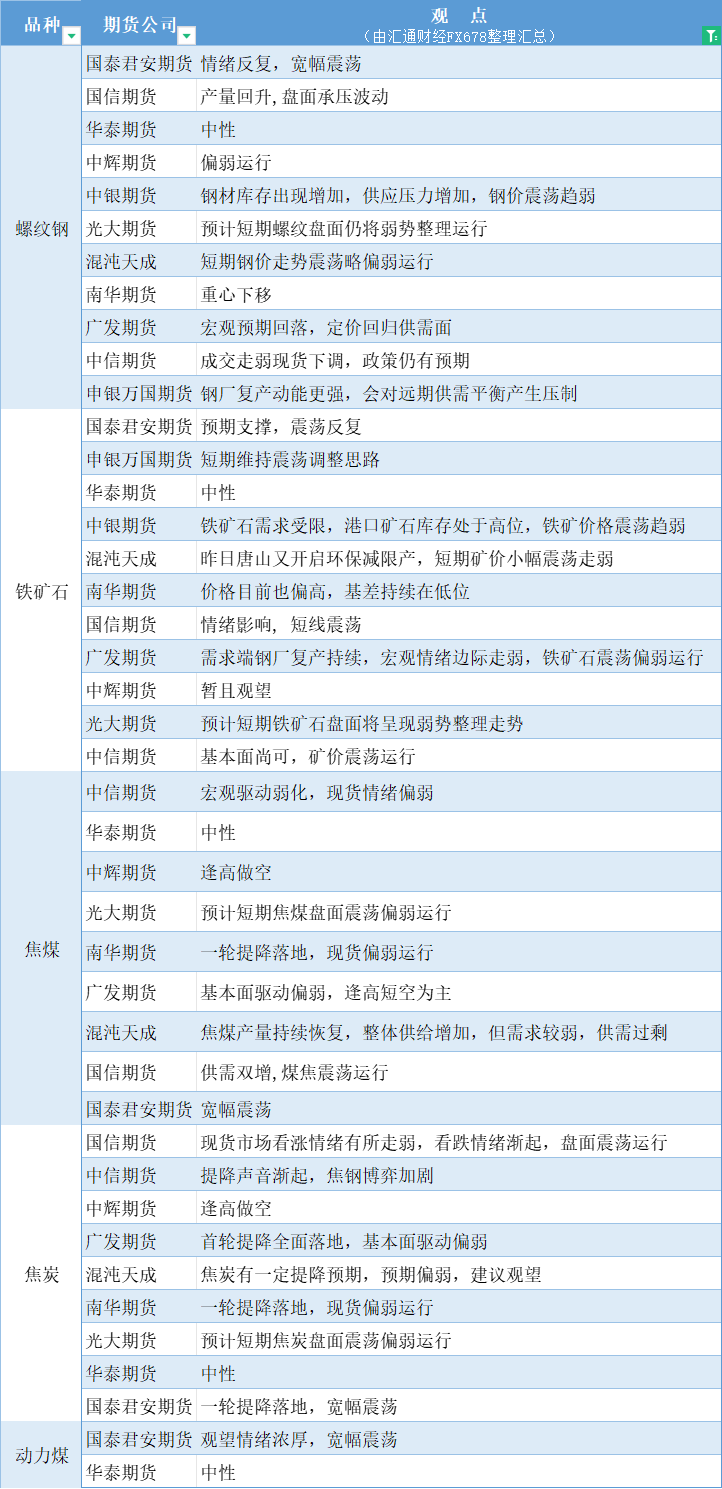 期货公司观点汇总一张图:10月24日黑色系(螺纹钢、焦煤、焦炭、铁矿石、动力煤等)